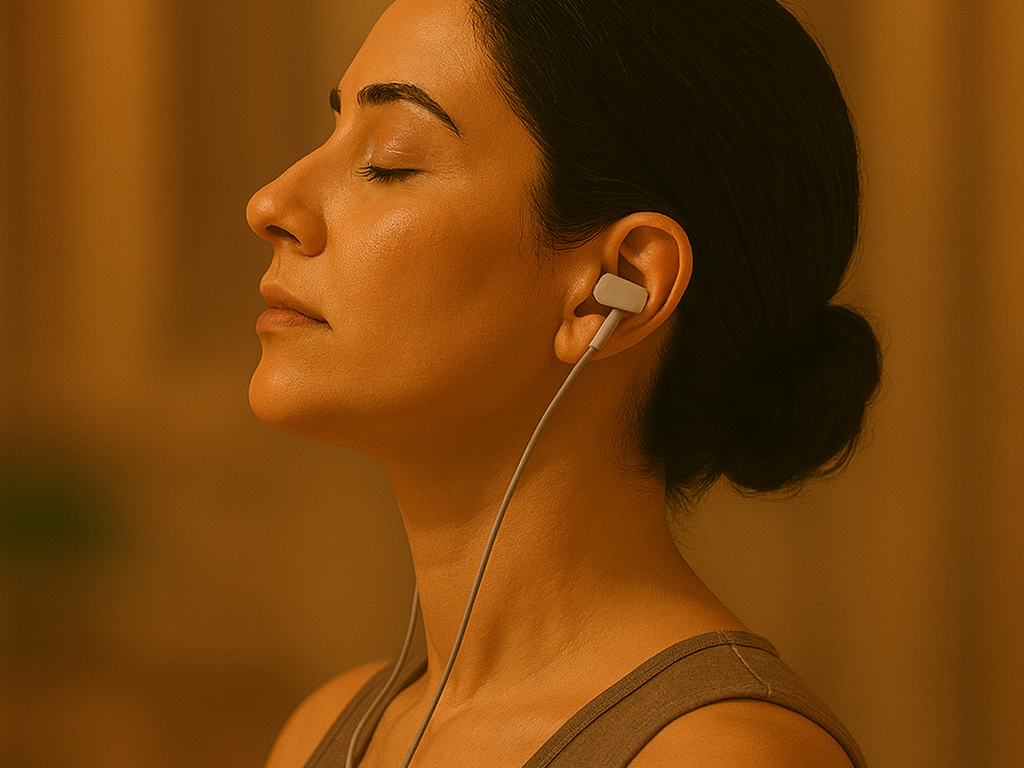 Nurosym ist ein nicht-invasives Gerät, das durch sanfte Stimulation des Vagusnervs Entspannung, Stressreduktion und allgemeines Wohlbefinden unterstützt.